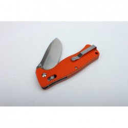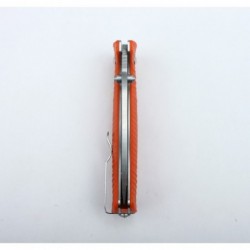El cuchillo Ganzo G720 Orange destaca por su hoja ancha de acero inoxidable 440C y su mango de fibra de vidrio G10. Desplegado mide 210 mm y doblado 120 mm. La hoja, de 90 mm de largo y 4 mm de grosor, tiene un diseño de punto de caída. El mango ofrece gran resistencia y un agarre cómodo, con un clip de metal para fácil transporte. Peso: 205 g.