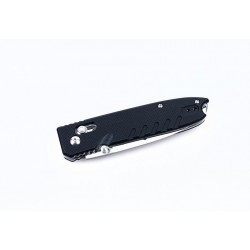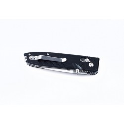 El modelo Ganzo G746-1 es un cuchillo plegable de multitarea. Se puede usarlo en la ciudad, cuando es necesario cortar un empaque, una manzana o algo más, y durante un viaje al aire libre. La practicidad de este cuchillo será apreciada por pescadores, turistas, aficionados a la comida campestre en una compañía de amigos. Para la hoja se utiliza el acero de grado 440C. Es una de las opciones más equilibradas para el acero inoxidable, dotada no solo de alta resistencia a la corrosión, sino también de buena dureza (aproximadamente 58HRK). Por lo tanto, es suficiente limpiar el cuchillo de metal mencionado solo después de su uso y afilarlo periódicamente. Por cierto, su borde cortante es suave y se lo puede afilar sin tener siquiera habilidades especiales para trabajar con piedras y máquinas de afilar. La cuchilla está pulida con un acabado satinado, lo que la hace completamente lisa y brillante, aunque las impresiones en la hoja serán mucho menos notables que con el pulido de espejo. La forma de esta hoja se llama drop-point, y su tamaño es 8,5 cm.