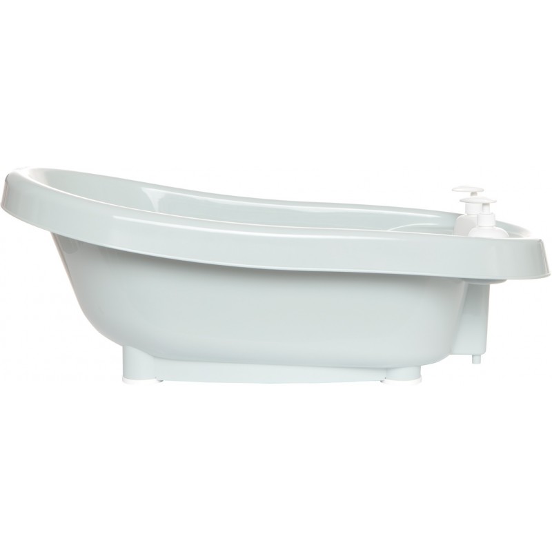 Bañera Thermobath de BebeJou con diseño clásico. Incluye dispensadores de champú, jabón, termómetro y tubo desagüe. Encaja con un click en el soporte de BebeJou.