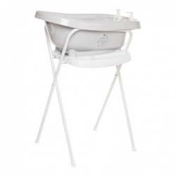 Bañera Thermobath de BebeJou con diseño clásico. Incluye dispensadores de champú, jabón, termómetro y tubo desagüe. Encaja con un click en el soporte de BebeJou.