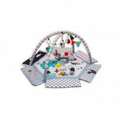 El gimnasio de juegos más completo, con piscina de bolas plegable. Diseño suave y divertido que estimula el desarrollo motriz y cognitivo. Con 30 bolas de colores (amarillo, blanco, transparente y negro) que puedes guardar en la adorable bolsa de almacenamiento que contiene el gimnasio. Incluye almohada para el bebé, diferentes sonajeros con figuras de animales y una linea de banderas para colgar justo al lado de las otras figuras. Transformable, levantando los lados, en una super piscina de bolas. Cuatro posibles posiciones de juego para el bebé (barriga, espalda, gatear y sentarse). Dimensiones 106 × 106 × 56,5 cm