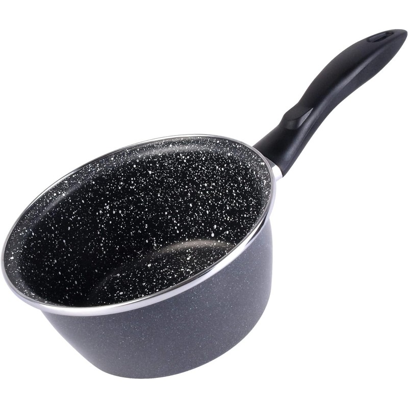 Detalles: Fabricado en acero esmaltado vitrificado a 820º. Alto rendimiento energético. Recubrimiento piedra antiadherente bicapa reforzado libre de PFOA. Dos capas de esmalte exterior, color gris moteado. Tapas de cristal con cerquillos de inox y salida de vapor. Herrajes ergonómicos de baquelita. Válidas para cocinas de gas, eléctrica, vitrocerámicas e inducción. Válidas para lavavajillas. Producto fabricado en España. Todos los productos cumplen la norma UNE-EN 12983-1.
