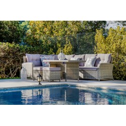 Compuesto por rinconera, mesa y 2 taburetes