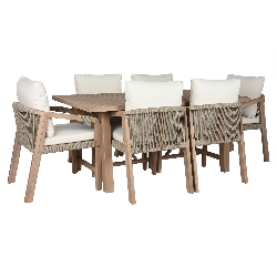 SET 7 ACACIA 170X90X75 CON 6 SILLAS Y MESA COMEDOR