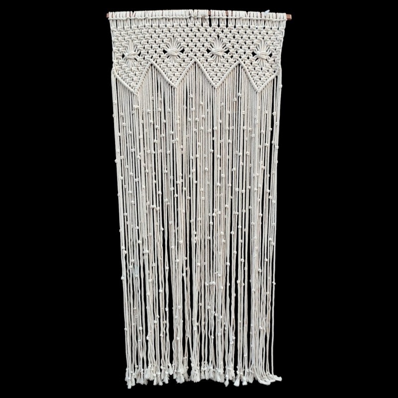 Cortina macramé Caudete de 90x210 cm en hilo de algodón de 5 mm. Diseño artesanal y personalizable. Contacto: 962173213.
