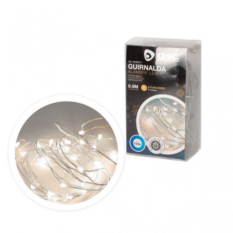 Guirnalda alambre LED 9,9M 8 funciones Luz fría