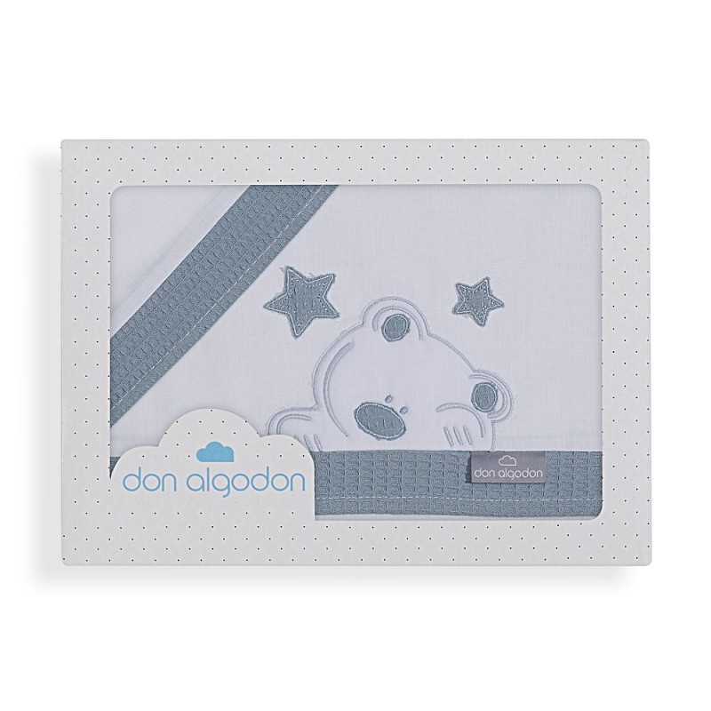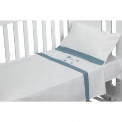 Juego de sábanas para cuna. 100% algodón. Modelo Viggo. Color: blanco y petroleo. Para cunas de 120x60 cm.