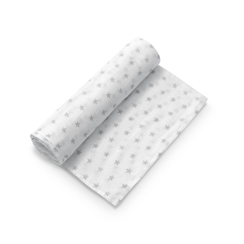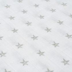 El modelo "Star" en blanco y gris puede tener un diseño estampado de estrellas en tonos de blanco y gris, lo que lo hace atractivo para el público infantil. Los diseños con estampados son comunes en las muselinas para bebés, ya que agregan un toque lúdico y adicionalmente se pueden utilizar como mantas de juego, cubiertas para el cochecito o como elementos decorativos en la habitación del bebé.