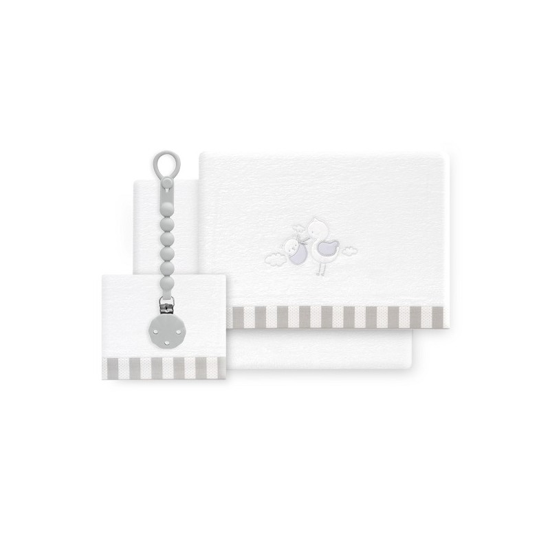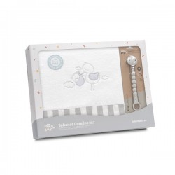 Triptico Cuna Coralina Cigueña Oso + Broche Bco/Gris