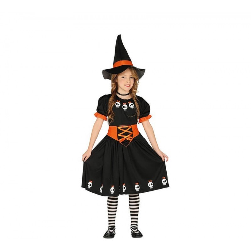 Disfraz de Brujita, Bruja o Hechicera Calaveras para niña. Incluye sombrero y vestido. No incluye medias ni calzado. Talla de 10 a 12 años.