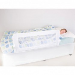 Barrera para cama Maggie de 110 x 50cm con marco rígido en gris claro y tejido transpirable. Apto para lavar a máquina. Muy práctica para proteger a los niños de caídas en la cama, se engancha al somier. Fácilmente encajable. Plegable y desmontable.