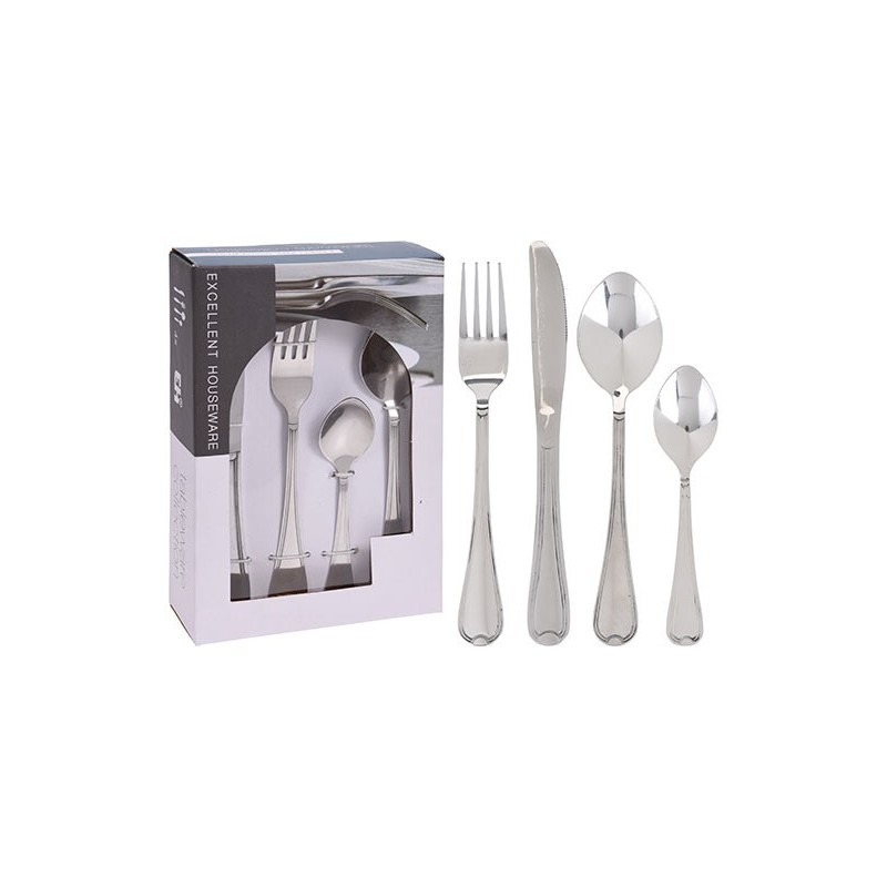Compuesto por; 4 cuchillos, 4 tenedores, 4 cucharas y 4 cucharillas.