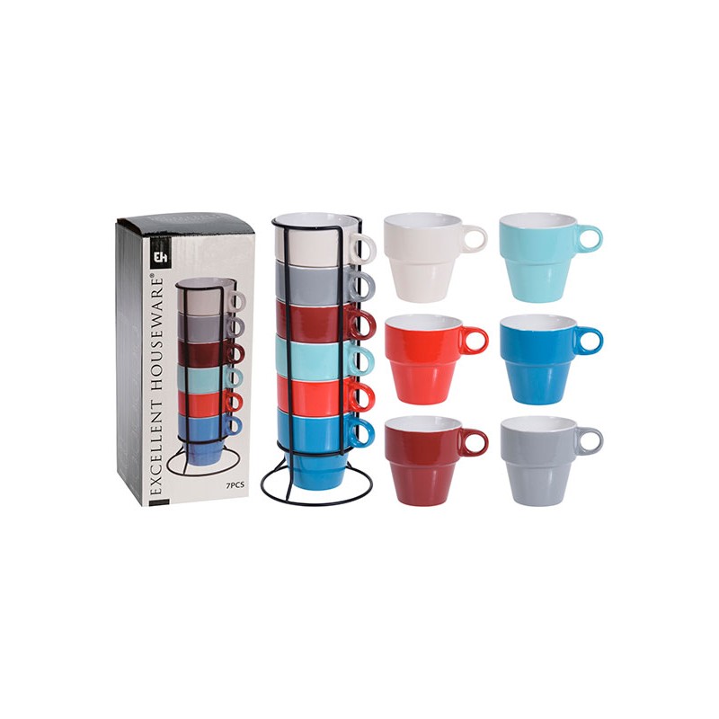 MUG SET 6 UDS. C/SOPORTE METAL 300ML EXCELLENT Q80