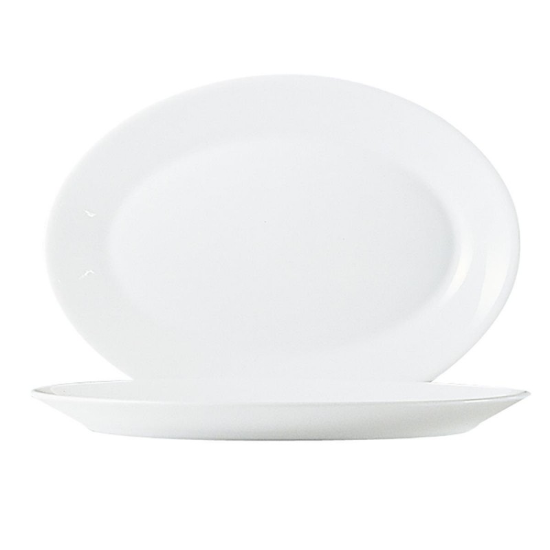 La fuente oval Opal Restaurant Arcoroc es apta para microondas y lavavajillas, resistente al choque térmico, reciclable, ecológica, 100% higiénica, extra resistente y no porosa. Apilable, de vidrio templado, material saludable y duradero. Diámetro: 29 cm. Ideal para uso intensivo y fácil de mantener.
