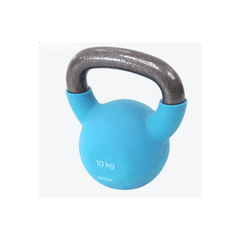 Pesa rusa con revestimiento de neopreno. 10 Kg. Hierro fundido. Agarre ergonómico. Diseño estético y fácil de limpiar.