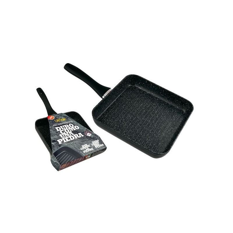 Aluminio forjado de 4,5 mm. Fondo especial inducción. Anti adherente de triple capa. Interior con grill. Mango tacto silicona de anchura especial.