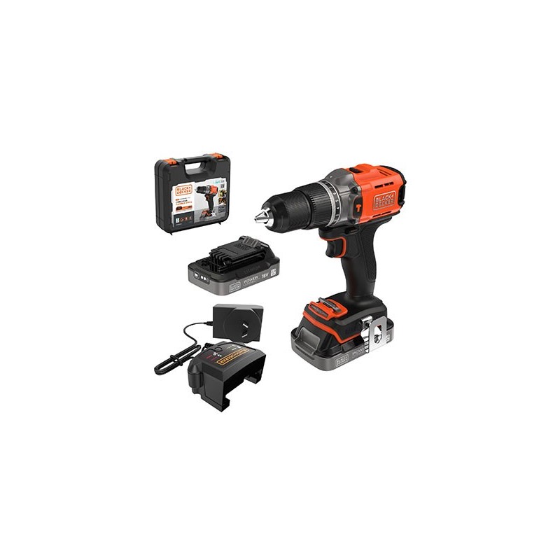BCD383D2XK TALADRO PERCUTOR ECO 18V 45NM 2X2AH B&D