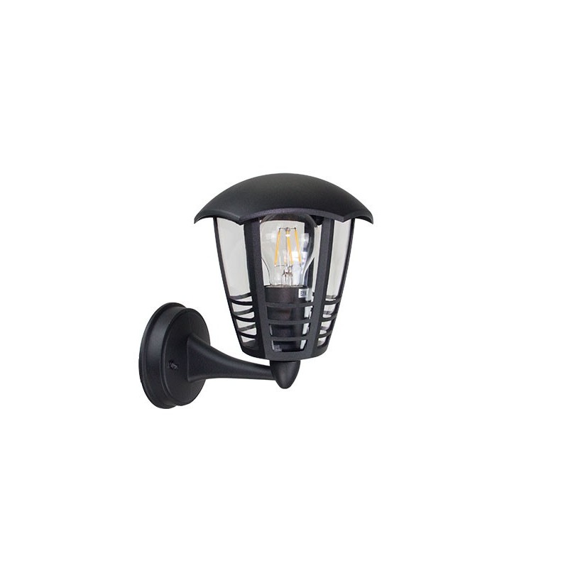 Color: Negro Mate Material: Aluminio PC Claro Medidas: 21x17x24 cm. (Bombilla no incluida) LED E27 MÁX. 10W IP44