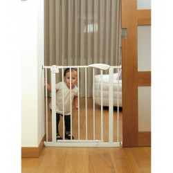 Práctica puerta de seguridad extensible de fácil instalación sin agujeros. Se puede instalar en huecos y puertas de entre 75 y 85 cm y tiene posibilidad de apertura a ambos lados.