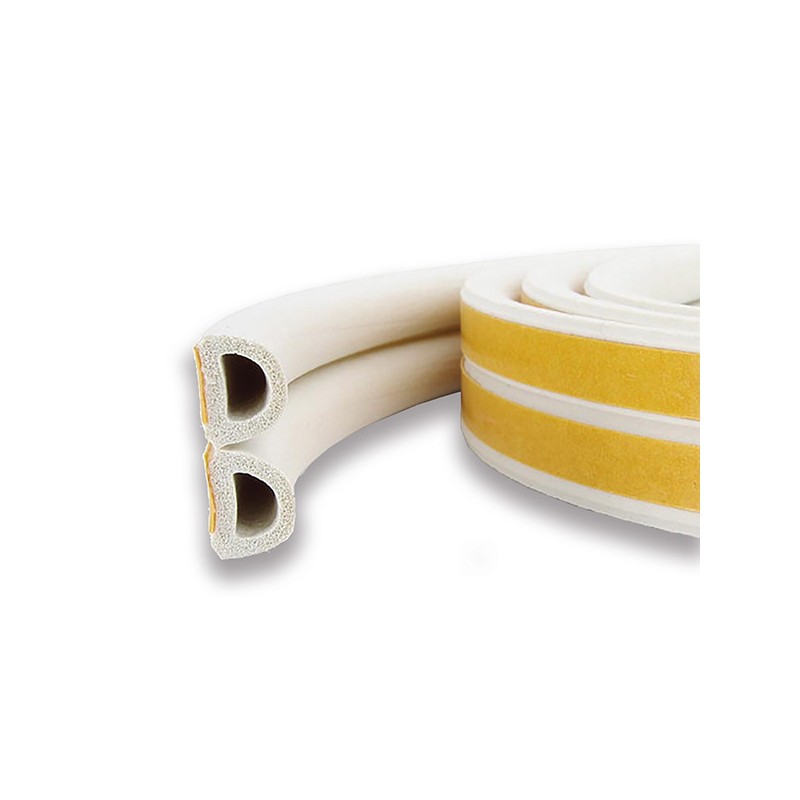 BURLETE PUERTA Y VENTANA TIPO "D" 9X6MM ADHESIVO. BLANCO