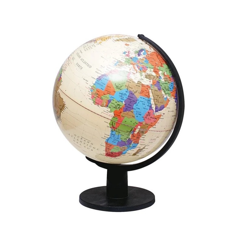 Esfera Mundo Luminosa Campus University 32cm en crema: cartografía detallada, meridianos claros. Plástico resistente, luz suave con enchufe. Ideal para estudiar geografía o decorar con estilo.