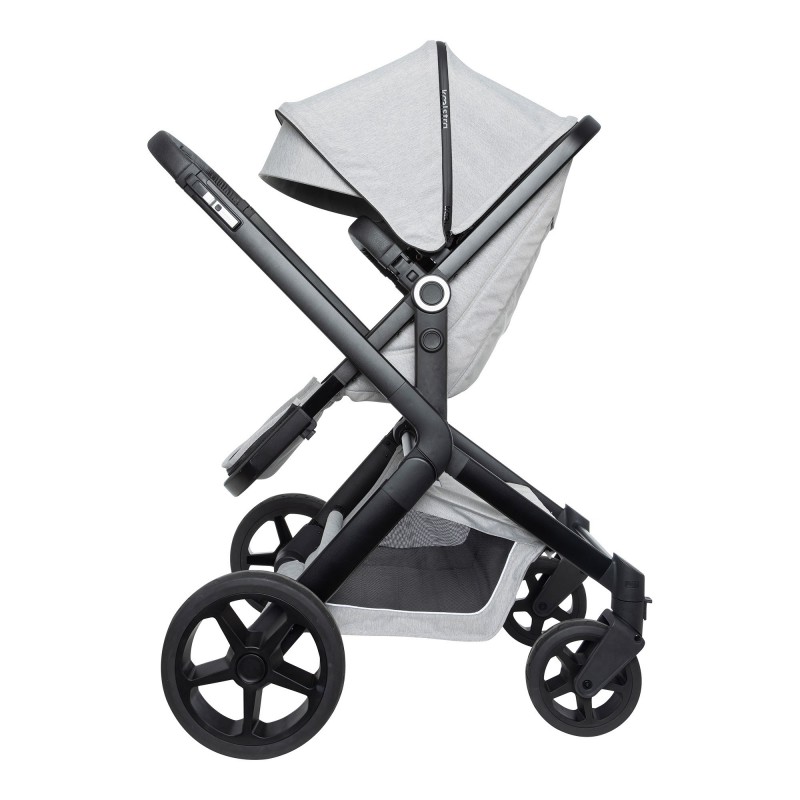 El cochecito de Koelstra destaca por su comodidad y practicidad, soporta hasta los 22 kg. El manillar tiene 4 posiciones de altura y está fabricado en Bananatex (tela fabricada con fibras de plantas de plátano). Sus cuatro ruedas macizas de goma se puede desmontar, haciendolo compacto a la hora del plegado. Bloqueo en las ruedas frontales. Cesta accesible de grandes dimensiones. Freno solidario con pedal central en el eje trasero. Botón de memoria para quitar el accesorio de cochecito con una sola mano. La silla es reversible, tiene una amplia capota y tres posiciones de reclinado. Su longitud es variable para poder adaptarla al tamaño del peque. Arnés de 5 puntos acolchado en ambas asas. Su envío consta de un único bulto: chasis, cuco y silla se envía junto. Disponible como accesorio la burbuja de lluvia Peso del chasis 9 kg. Peso de la silla 3 kg Dimensiones del chasis montado 88cm de longitud, 59cm de anchura y 98-114cm de altura Dimensiones del chasis plegado 70cm de longitud, 59cm de anchura y 32cm de altura Dimensiones interiores de la silla 33cm de anchura, 47cm de altura del respaldo, 22cm de profundidad del asiento y 16-23cm de altura del reposapiés