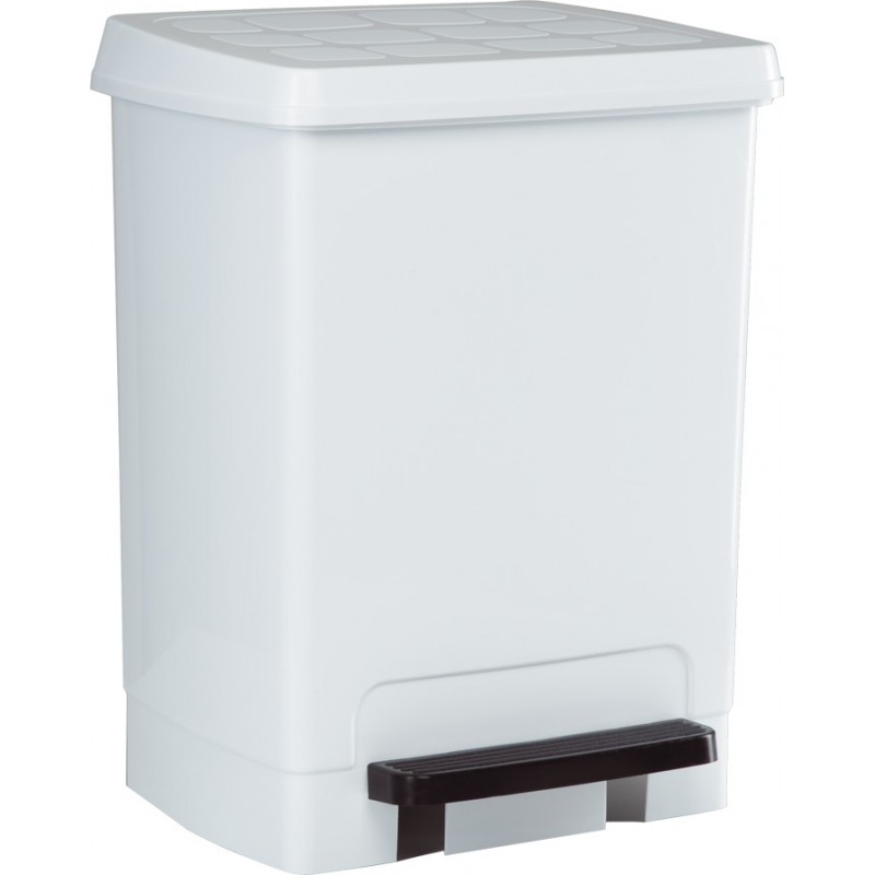 DESCRIPCIÓN Ref: 24150 Cubo basura con pedal. Capacidad 26 L. Medidas : 340x330x450 mm. Color : Blanco,Metal.