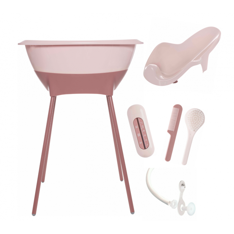 En este set de baño de LUMA podrás encontrar todo lo que necesitas para cuidar de tu recién nacido. Contiene seis artículos indispensables para el cuidado diario de tu bebé: bañera, soporte plástico con patas metálicas, asiento de baño, cepillo-peine, termómetro de baño y tubo de desagüe. 60x56x100cm.
