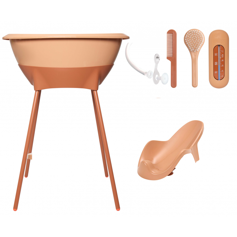 En este set de baño de LUMA podrás encontrar todo lo que necesitas para cuidar de tu recién nacido. Contiene seis artículos indispensables para el cuidado diario de tu bebé: bañera, soporte plástico con patas metálicas, asiento de baño, cepillo-peine, termómetro de baño y tubo de desagüe. 60x56x100cm.