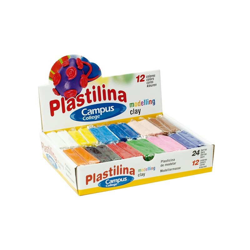 Caja de 24 barras de plastilina para modelar de 60 gramos por unidad. Apta para uso escolar. Muy moldeable, se alisa bien con los dedos. Gran plasticidad y consistencia. No se seca y se puede barnizar. Los colores se pueden mezclar entre sí. Color: 12 colores surtidos.