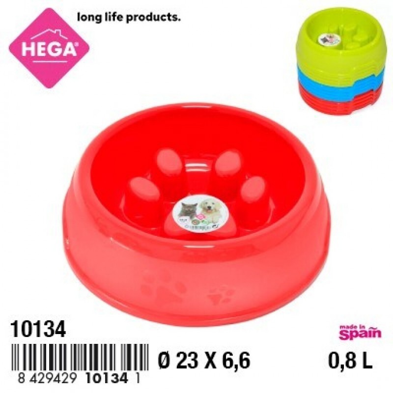 Comedero Dogo Redondo Come-Lento de 23 cm, ideal para regular la ingesta de alimento en perros. Diseño con relieves internos que promueven una alimentación más pausada y saludable. Fabricado en material resistente y fácil de limpiar. Disponible en colores surtidos según stock.