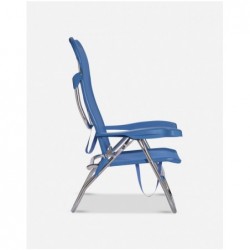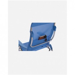 Silla de playa de gran calidad con asiento de altura media. Ideal para la playa, tienda de campaña o para su uso al aire libre. Esta silla es reclinable en 7 posiciones, incluyendo la posición “cama” que es completamente horizontal. Con pata trasera plegable para apoyar en el suelo. Reposabrazos anatómicos. Muy ligera y con asas para un transporte muy fácil. (80x64x10 cm). Altura de asiento: 30 cm. Profundidad de asiento: 37 cm. Anchura asiento: 48 cm. Longitud respaldo: 67cm. Carga máxima: 110 kg. Silla de playa muy ligera con estructura en U. Reclinable con posición "cama" + 7 posiciones de respaldo. Con un práctico bolsillo trasero y asas. Plegado super plano en tan solo 10 cm de grosor. Calidad excepcional certificación europea TÜV NORD GS.