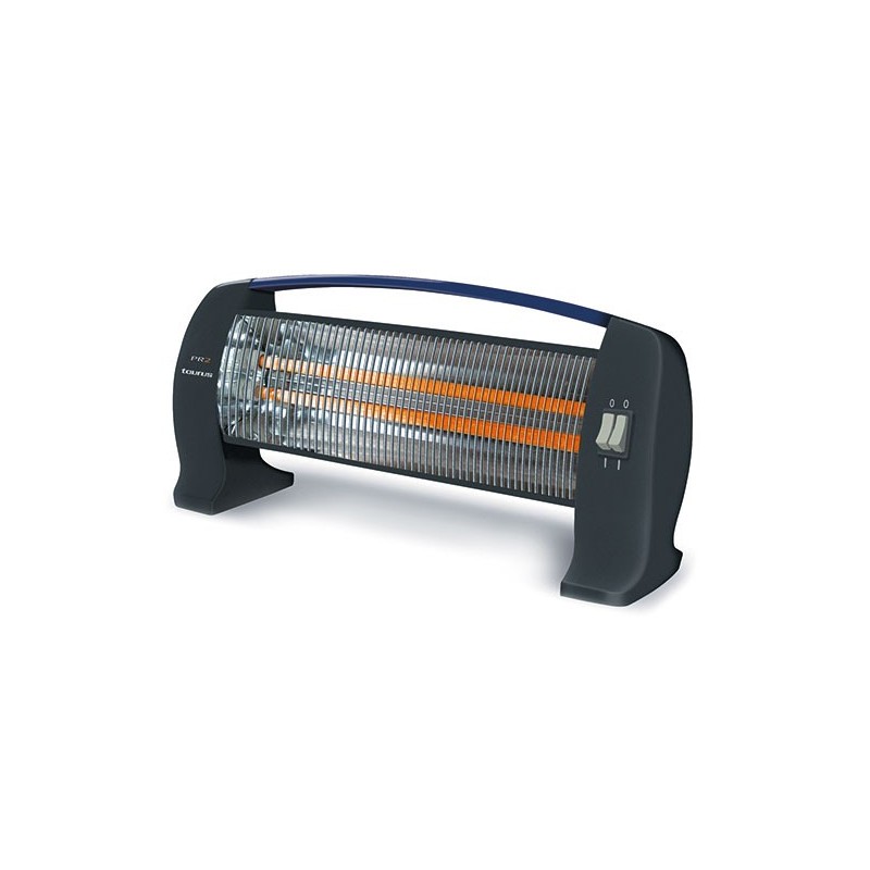 1200W 2 tubos de cuarzo de 600W cada uno Protector térmico de seguridad: Se para en caso de sobrecalentamiento Dispositivo antivuelco Con asa de transporte
