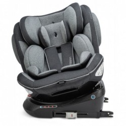 Esta silla de auto cumple con la normativa i-Size R129/03, su uso es desde los 76cm hasta los 150cm de altura. Rota 360º, con fijación ISOFIX. Tiene 11 posiciones de respaldo y 5 opciones de reclinado. Su uso a contramarcha es desde los 76cm hasta los 105cm (máximo 18 kg). La silla se puede poner en el sentido de la marcha desde los 76cm (mínimo 15 meses), gracias a su práctica rotación de 360 grados. Dimensiones externas 50cm x 45cm x 60cm Dimensiones del asiento 27cm x 32cm Altura del respaldo 50-68cm