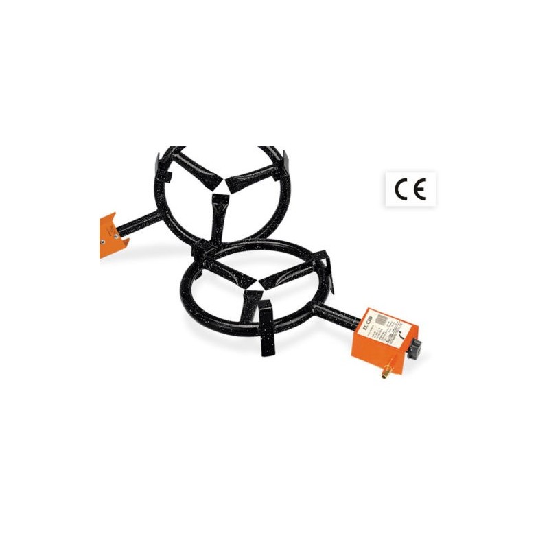 Paellero de 1 fuego. Tubo redondo. Diámetro 20 cm. Potencia: 5 Kw. Con certificado CE según el Reglamento (UE) 2016/426. Apto para gas butano y propano.