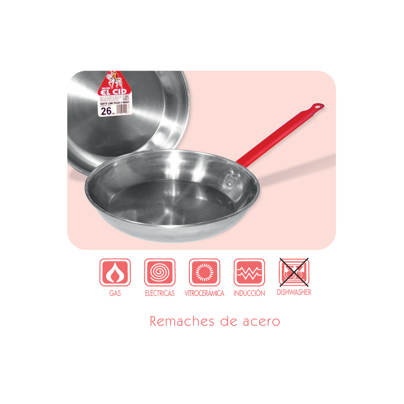 SARTÉN LLANA CON MANGO PULIDA DE 22 CM. Acabado pulido, mango ergonómico, remaches de acero. Apta para gas, eléctricas, vitrocerámica e inducción. ¡Cocina con versatilidad y durabilidad!