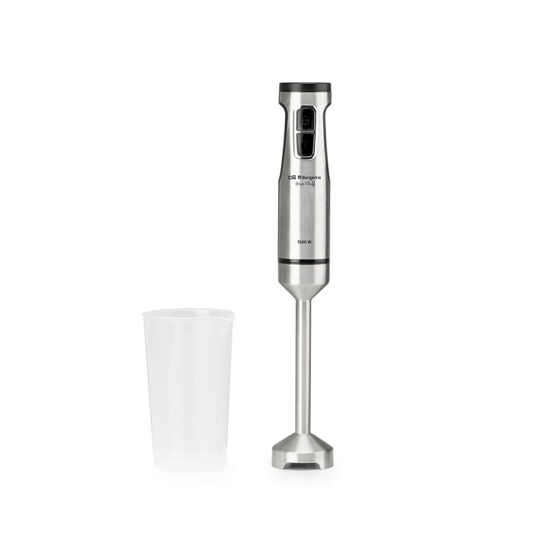 Batidora de mano Orbegozo BT 3015 de 1500 W con motor DC, velocidad regulable, turbo, brazo desmontable en acero inoxidable y vaso de 700 ml.