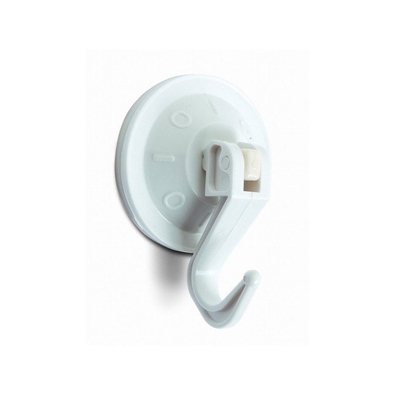 Colgador de ventosa con base de plástico ABS. Gancho articulado para aplicar presión a la ventosa de goma. Tamaño: Mediano Ø 53 mm Color: Blanco