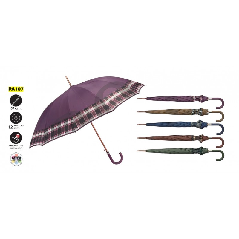 PARAGUAS SEÑORA CACHABA. Apertura automática, 12 varillas, 67 cm. Diseño clásico y resistente. Colores surtidos. ¡Protégete de la lluvia con estilo y comodidad!