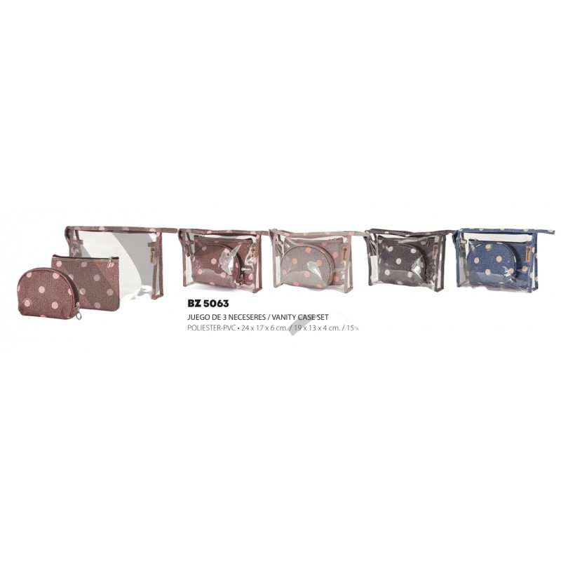 NECESER SRA. BENZI BZ5063. 3 neceseres, poliéster y PVC. Diseño transparente. Diferentes tamaños. Colores surtidos. ¡Organiza tus productos de belleza con estilo y practicidad!